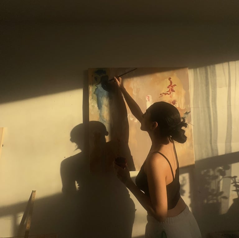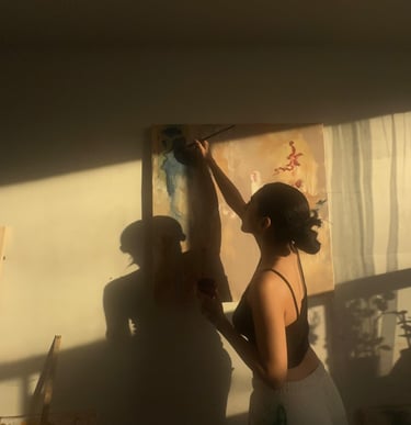 Working across painting, immersive art experiences, and creative gatherings, her practice blends visual art with human connection. Her work bridges modern abstraction with vulnerability, inviting viewers into moments of stillness, self-reflection, and emotional presence.